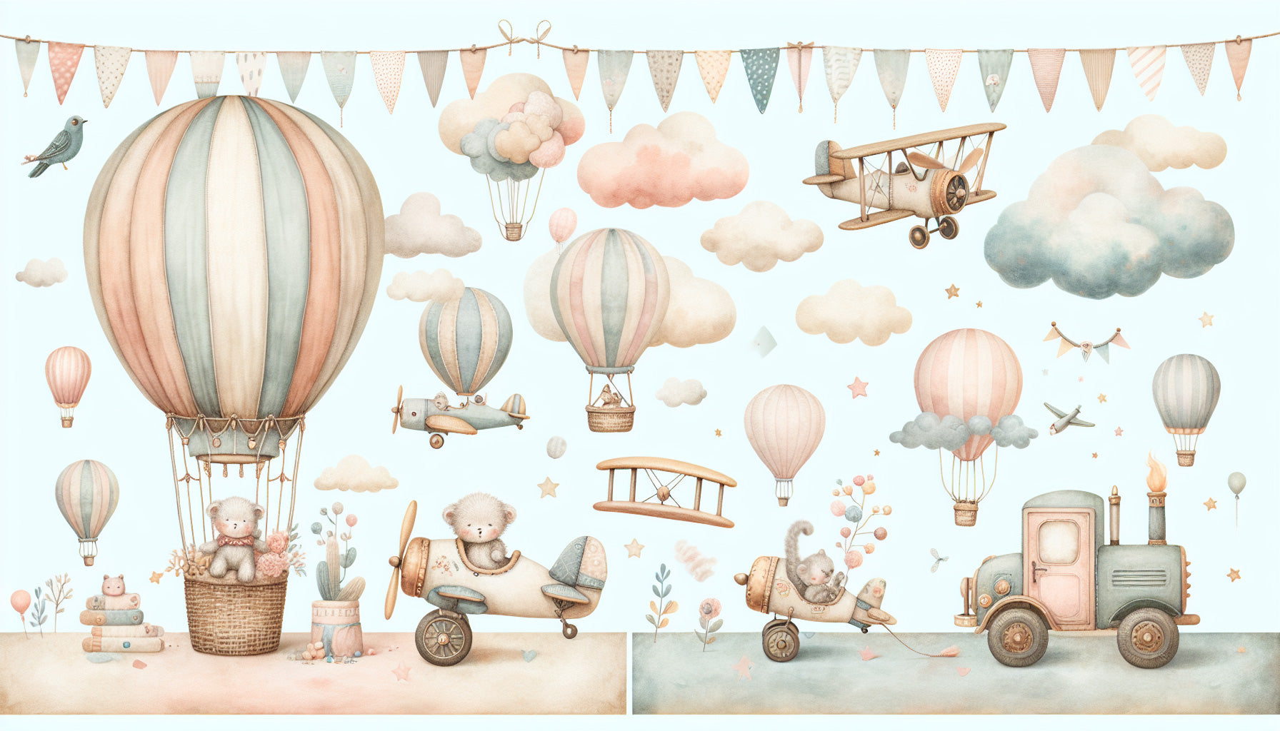 Papier Peint Montgolfière | Voyage Aérien avec Oursons en Aquarelle